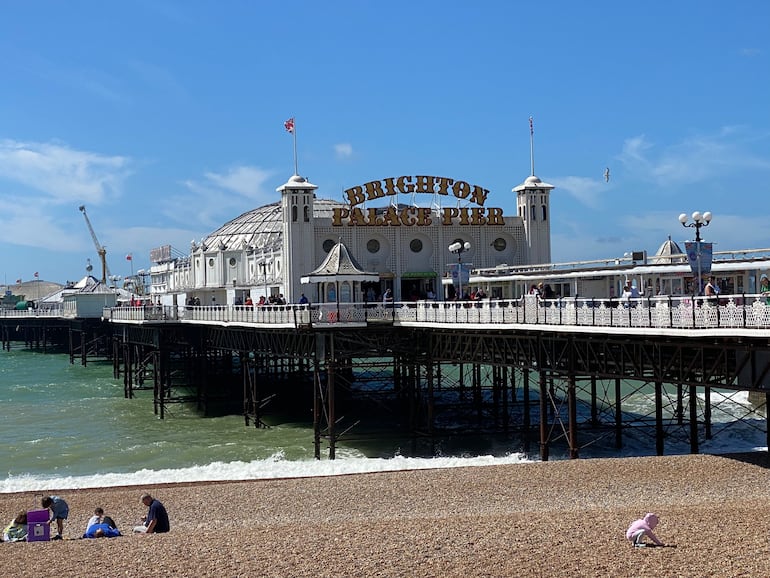 El lugar más distintivo de esta ciudad se encuentra en el agua. El muelle Brighton Palace Pier, con su famoso letrero, invita a divertirse recorriendo sus distintos sitios de interés, una mezcla de parque de atracciones, casino, bares y restaurantes que se adentra en el mar.