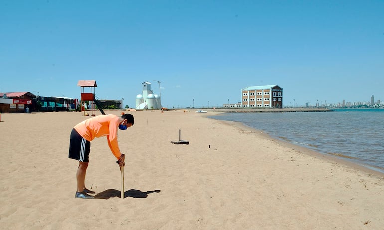 Un guardavidas muestra uno de los espacios que será delimitado por estacas, en playa San José.