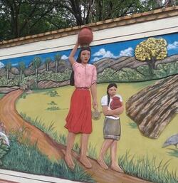 En las imágenes se puede ver a las mujeres sosteniendo un canasto y otras haciendo los cántaros. También hay murales de los artesanos que trabajan en el tradicional ysypo y confeccionando el sombrero pirí que es uno de los trabajos que identifica a la ciudad de la cerámica.