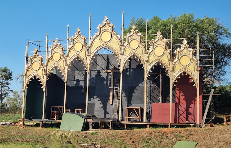 En ese sentido, Macarena Ruiz mencionó que en estos momentos ya están ultimando los detalles en el gran retablo estilo gótico, el cual ya está en pleno montaje, donde se realizará la puesta en escena de cinco cuadros vivientes de la Pasión de Cristo, como la traición de Judas, la crucifixión, el arresto, entre otros.